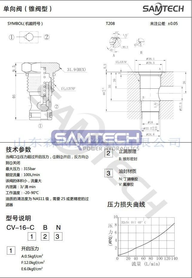 螺紋單向閥CV-16/DF12(錐閥型)液壓螺紋插裝閥螺紋插裝式單向閥 保壓閥