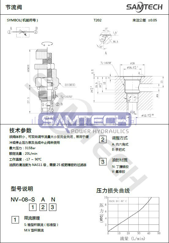 節流單向閥NV08液壓插裝式節流閥/流量控制閥 螺紋式節流閥