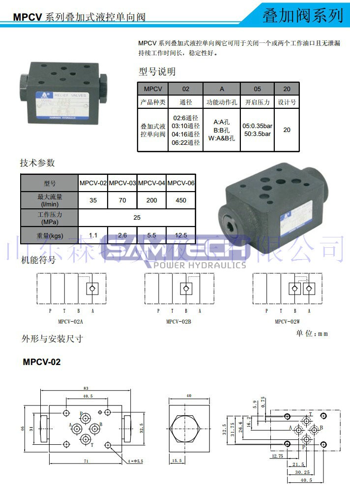 疊加閥MPCV-02W液壓疊加式液控單向閥 液壓鎖 保壓閥