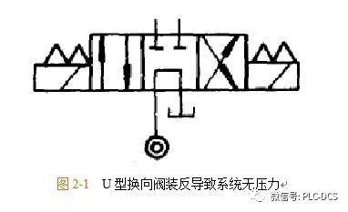 設備在檢修,元件裝拆更換后出現壓力為零現象,可能原因如下:液壓泵未裝緊,不能形成工作容積;液壓泵內未裝油,不能形成密封油膜;換向閥芯裝反;換向閥裝反,如果系統中有U型中位機能的換向閥,一旦裝反,便使系統泄壓(如圖2-1所示)。